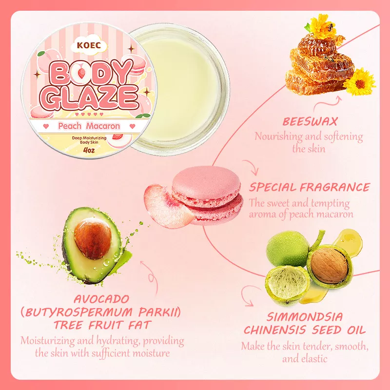 Goûtez au Beurre de Massage Parfumé Body Glaze Macaron à la Pêche 120ml qui accompagnera à merveille vos moments intimes. Profitez de massages sensuels délicieusement aromatisés au macaron à la pêche, et prenez soin de votre peau autant que de votre relation avec votre partenaire. Hydratant et nourrissant, il améliore l'élasticité de la peau sans jamais être grasse, et vous promet de nombreux instants de complicité.