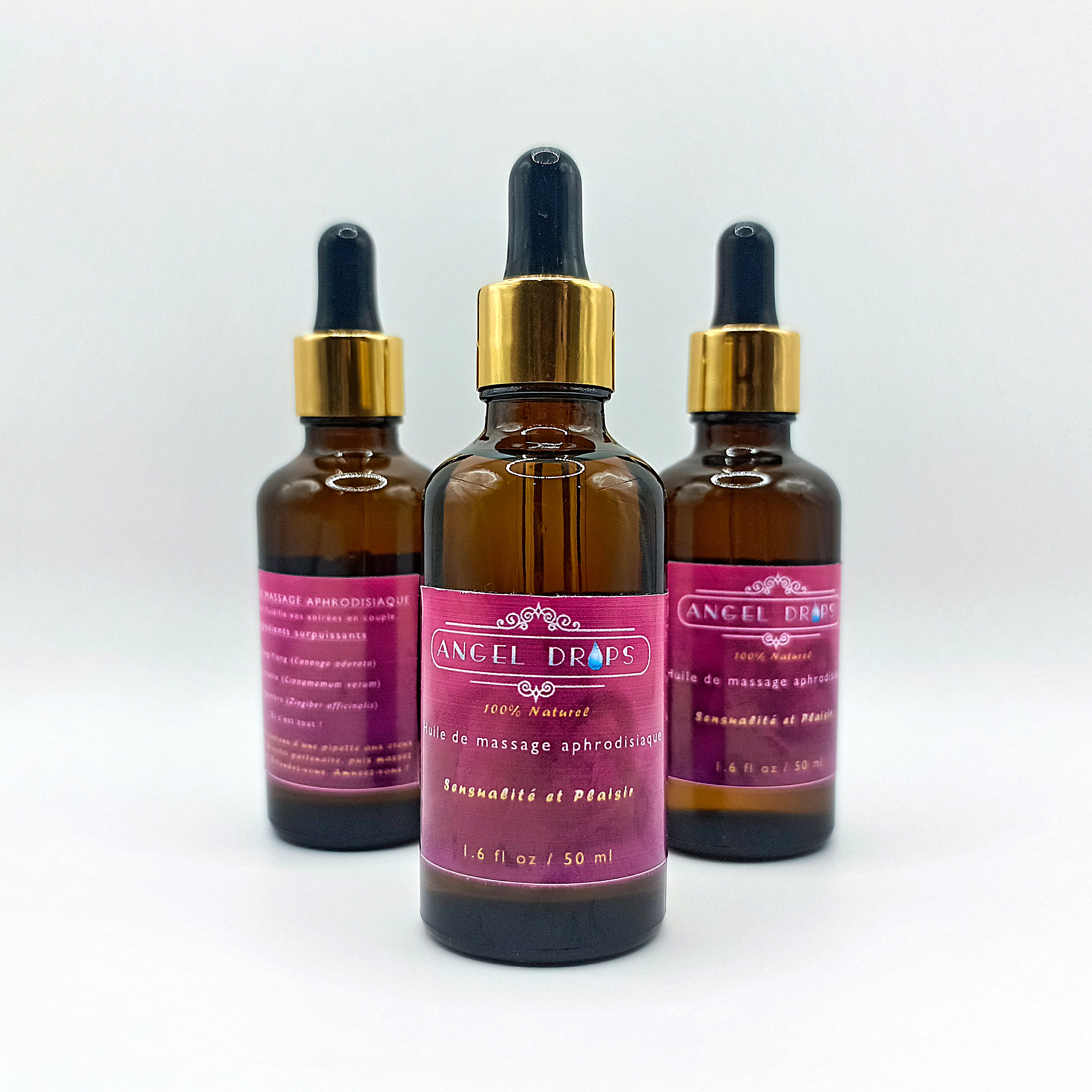 L'Huile de Massage Aphrodisiaque Angel Drops est conçue pour éveiller et inviter à l'amour. Cette composition a pour résultat de stimuler le désir sexuel. Elle est prête à l'emploi grâce à sa synergie d'huiles essentielles dont le Ylang ylang, le Gingembre et la Cannelle, réputées pour leurs vertus relaxantes et aphrodisiaques. Elle est parfaite pour les personnes qui cherchent une solution naturelle à stimuler le désir sexuel et qui sont susceptibles aux problèmes liés au stress sans aucun effet secondaire.