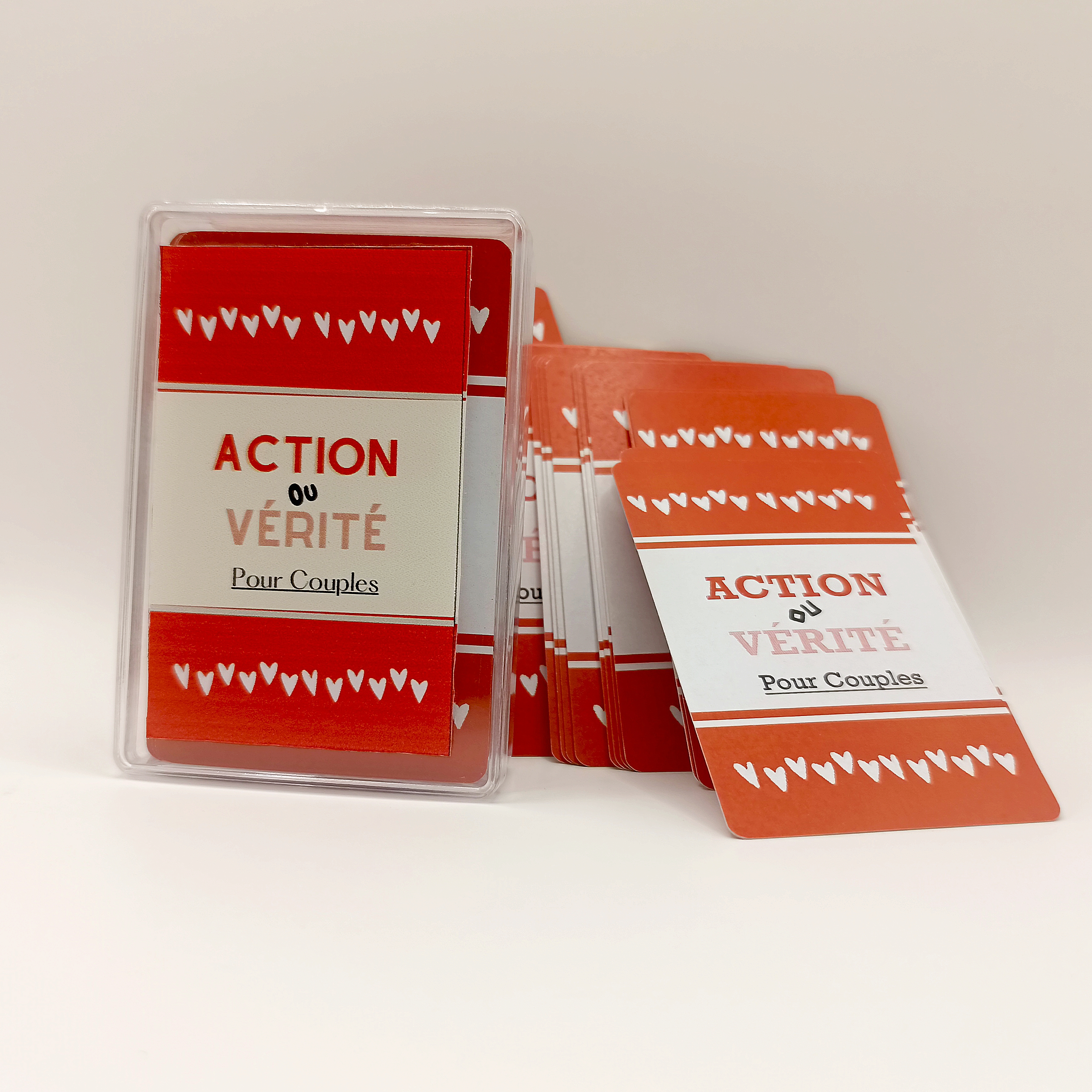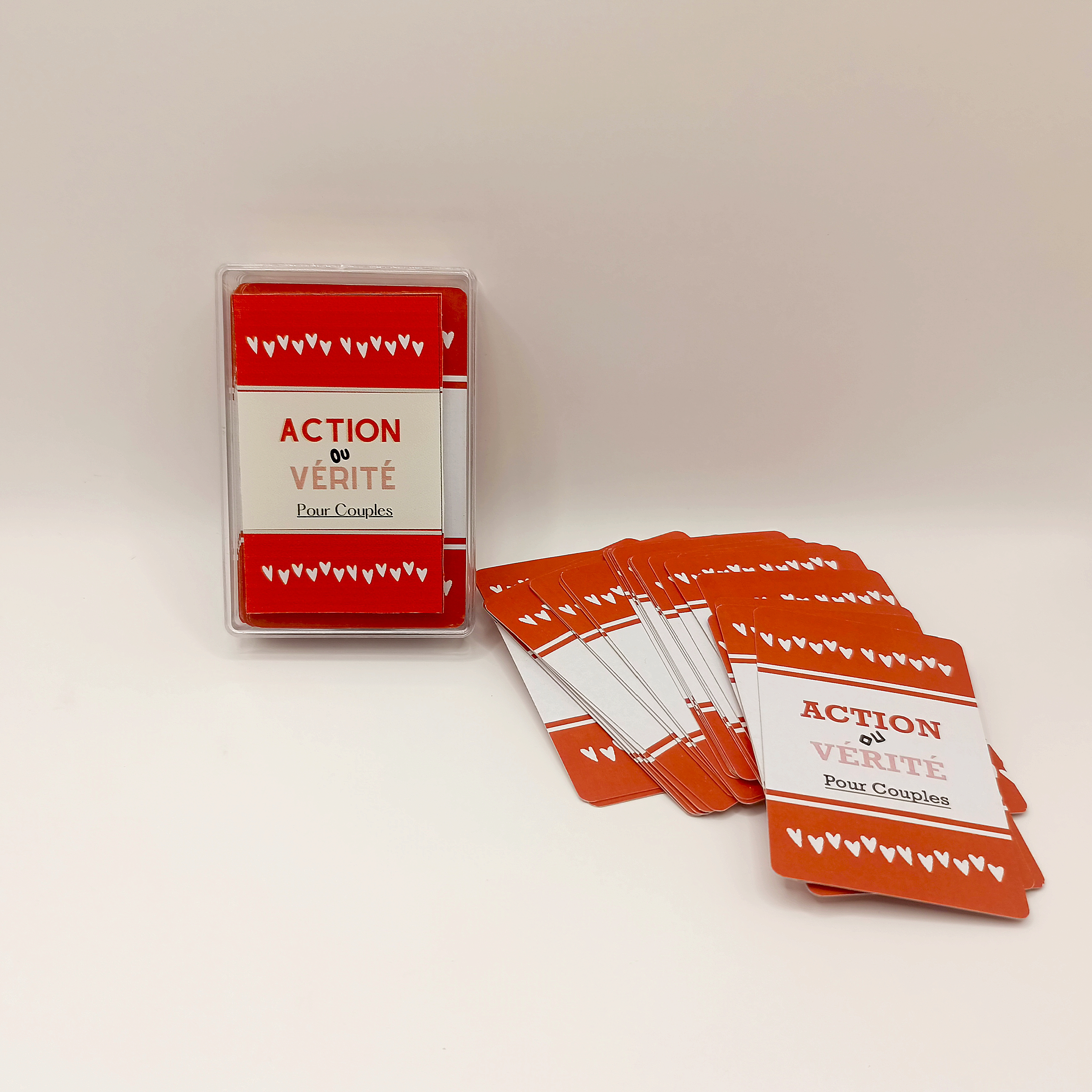 Voici le Jeu Coquin Action ou Vérité ! Il contient 50 questions très intimes et 50 défis provocants à relever ! Il est parfait pour vos soirées les plus osées et excitantes et pour vous rendre encore plus complices sous la couette… et hors de la chambre aussi !