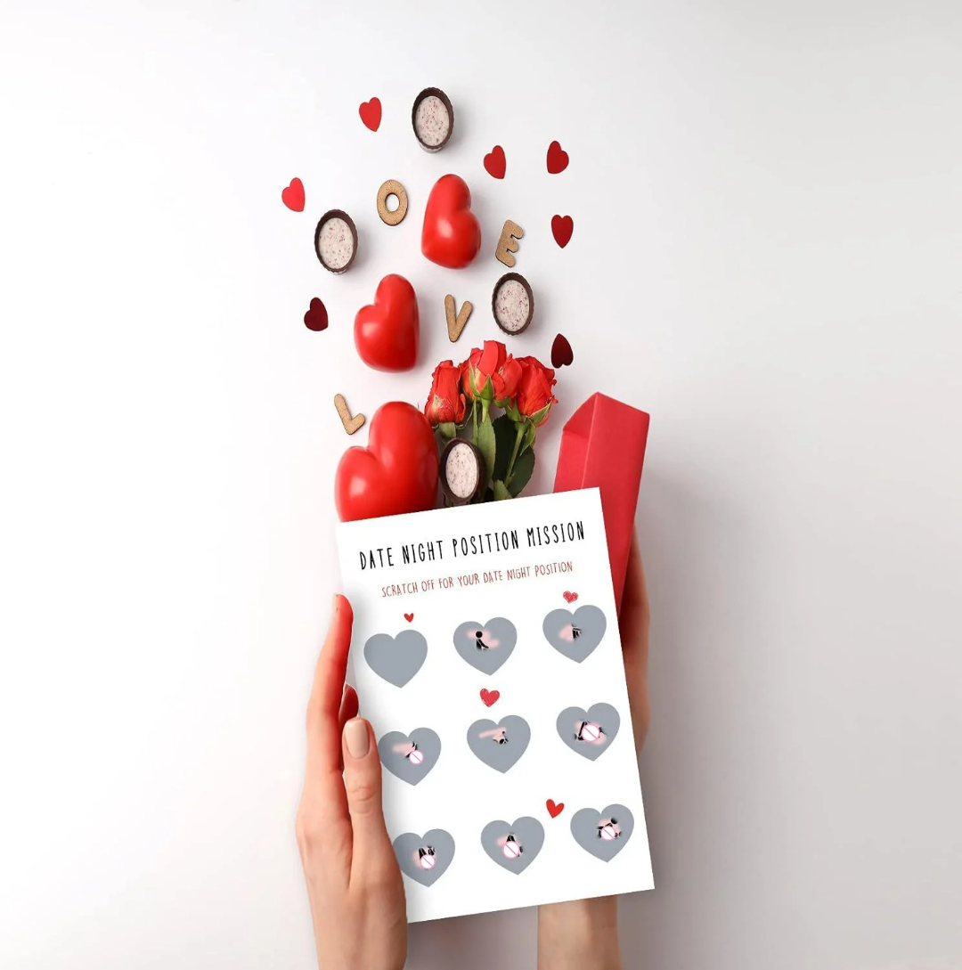 Sur la carte vous trouverez 9 coeurs à gratter, en découvrant plusieurs positions pour passer une nuit mémorable !