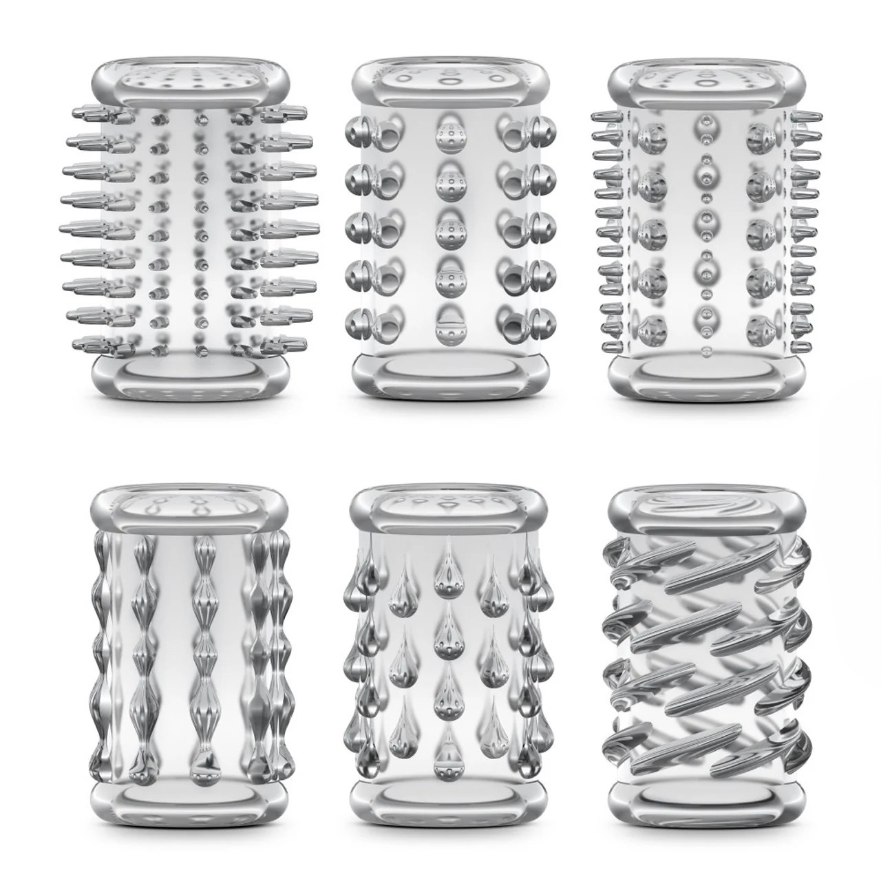 Ces 6 Manchons ont tous un style différent, avec différents picots pour différentes stimulations. À vous de choisir lequel vous voulez porter ce soir, ou bien laisser madame décider par quelle stimulation elle souhaite jouir.