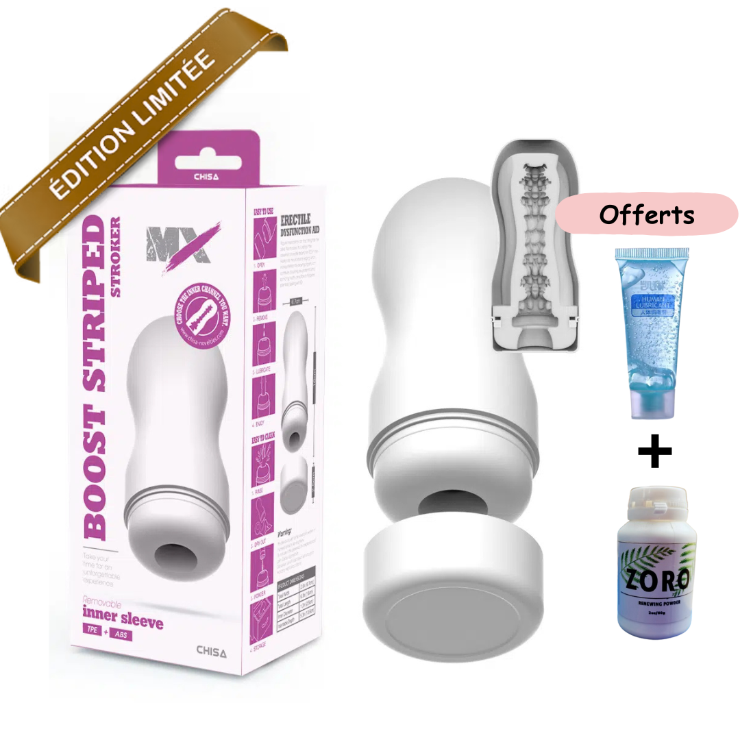 Découvrez le Masturbateur Boost Striped Stroker, un jouet masculin innovant doté d’une gaine amovible et d’une succion ajustable, spécialement conçu pour procurer une stimulation intense et potentiellement aider à prévenir la dysfonction érectile.