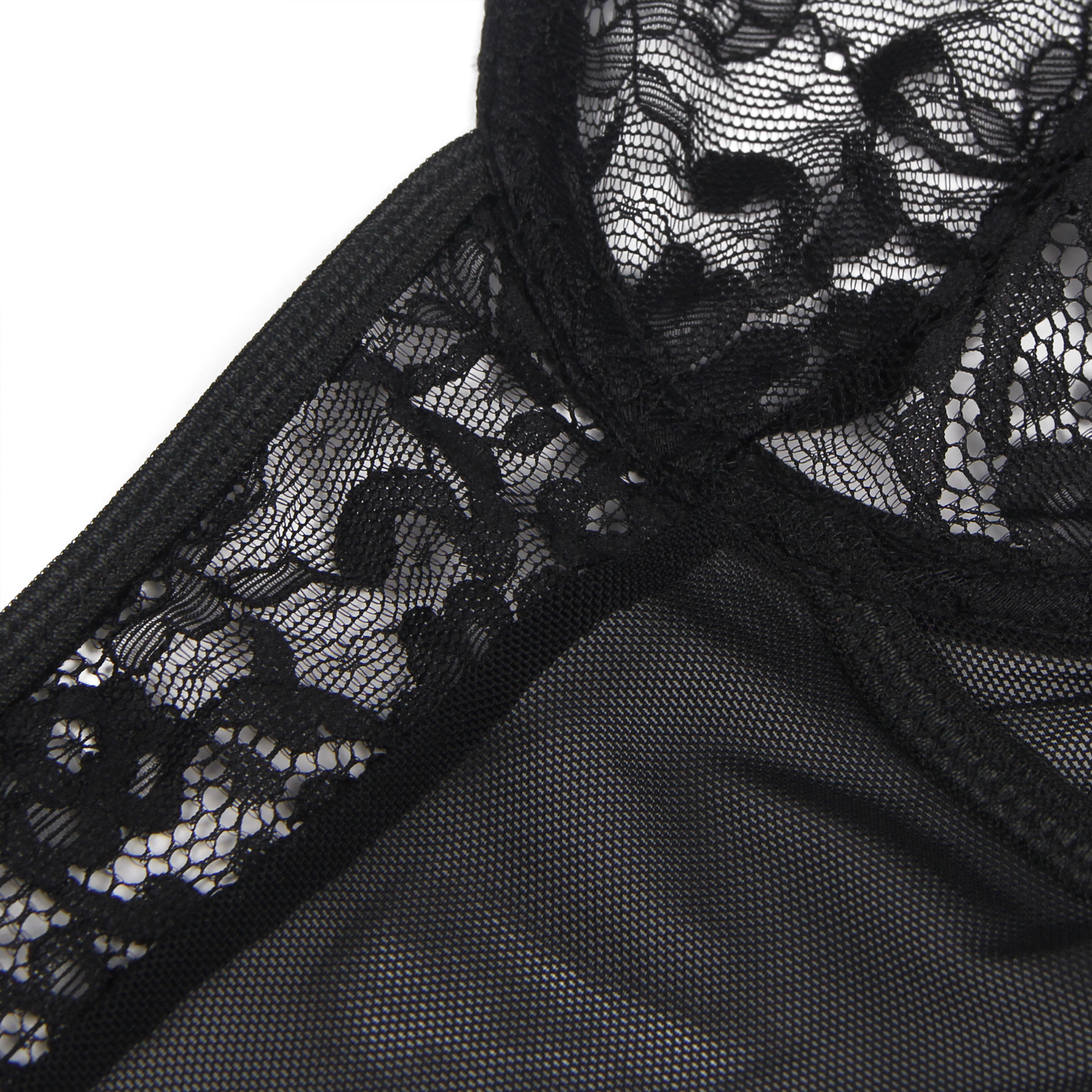Le harnais porte-jarretelles est conçu dans le même esprit avec la dentelle florale. Bordées de sangles en dentelle en guise de jarretelles réglables, vos cuisses sont entourées de fines jarretières au bout des quatre jarretelles pour un style original et provocant.