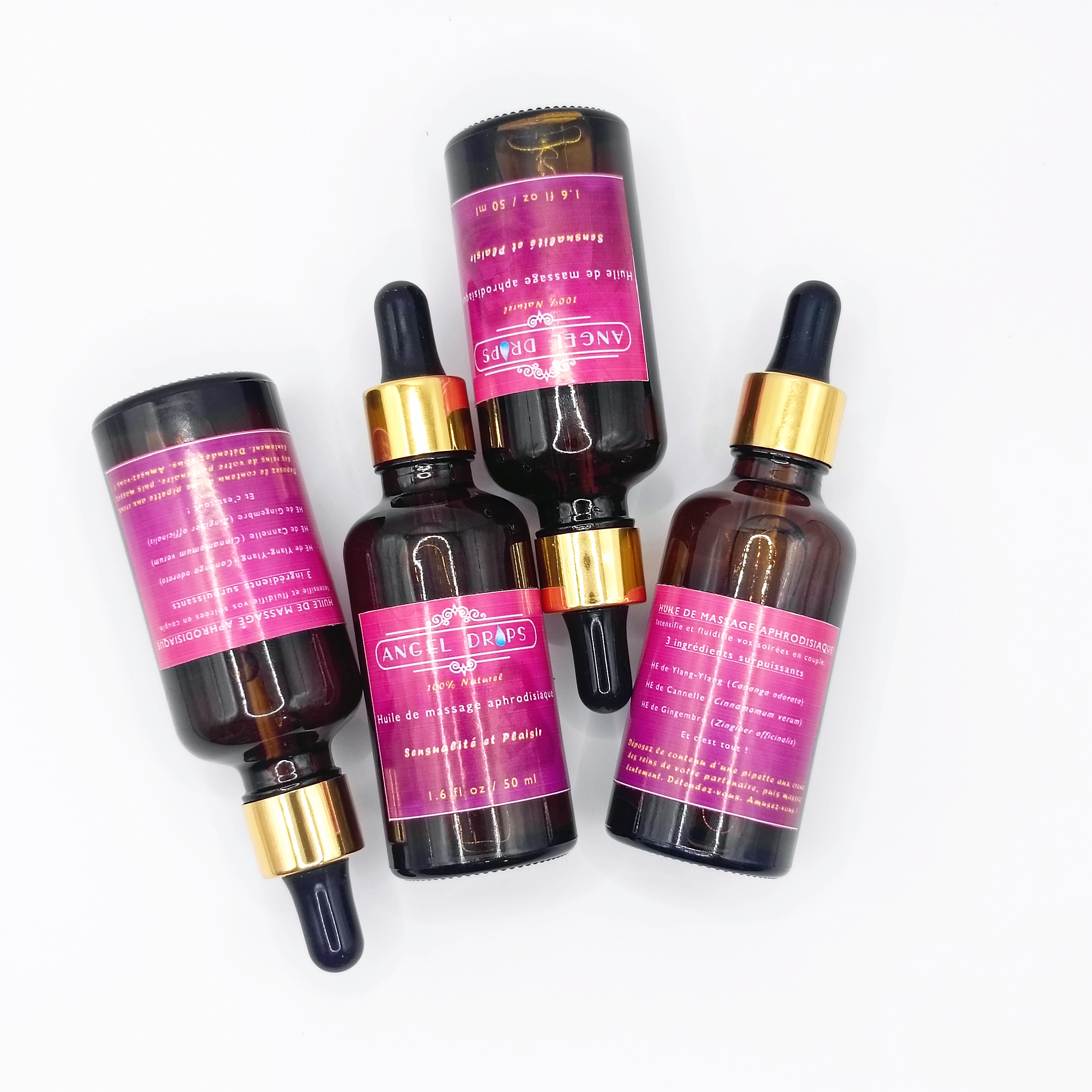 L'Huile de Massage Aphrodisiaque Angel Drops est conçue pour éveiller et inviter à l'amour. Cette composition a pour résultat de stimuler le désir sexuel. Elle est prête à l'emploi grâce à sa synergie d'huiles essentielles dont le Ylang ylang, le Gingembre et la Cannelle, réputées pour leurs vertus relaxantes et aphrodisiaques. Elle est parfaite pour les personnes qui cherchent une solution naturelle à stimuler le désir sexuel et qui sont susceptibles aux problèmes liés au stress sans aucun effet secondaire.