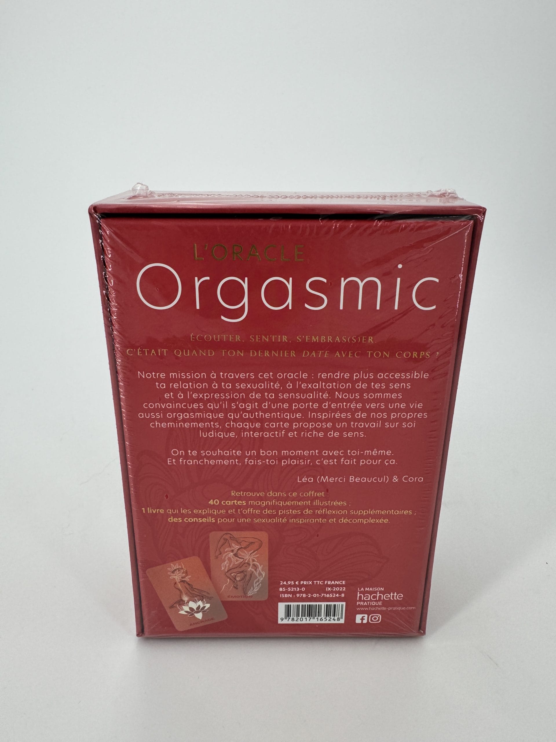 Notre mission à travers cet oracle : rendre plus accessible ta relation à ta sexualité, à l’exaltation de tes sens et à l’expression de ta sensualité. Nous sommes convaincues qu'il s'agit d'une porte d'entrée vers une vie aussi orgasmique qu'authentique. Inspirées de nos propres cheminements, chaque carte propose un travail sur soi ludique, interactif et riche de sens.