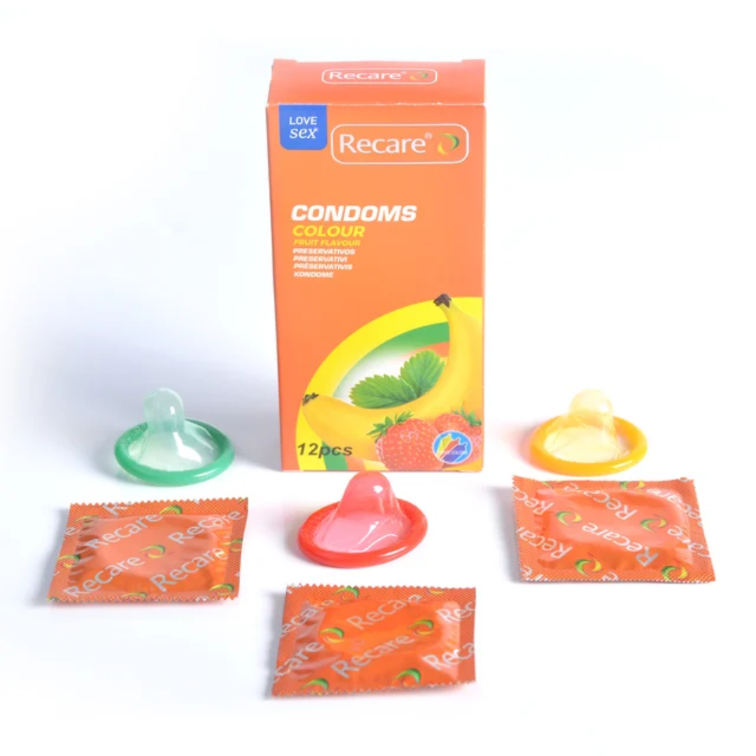 Le pack Préservatifs Recare Colorés et Parfumés Boîte de 12 contient :