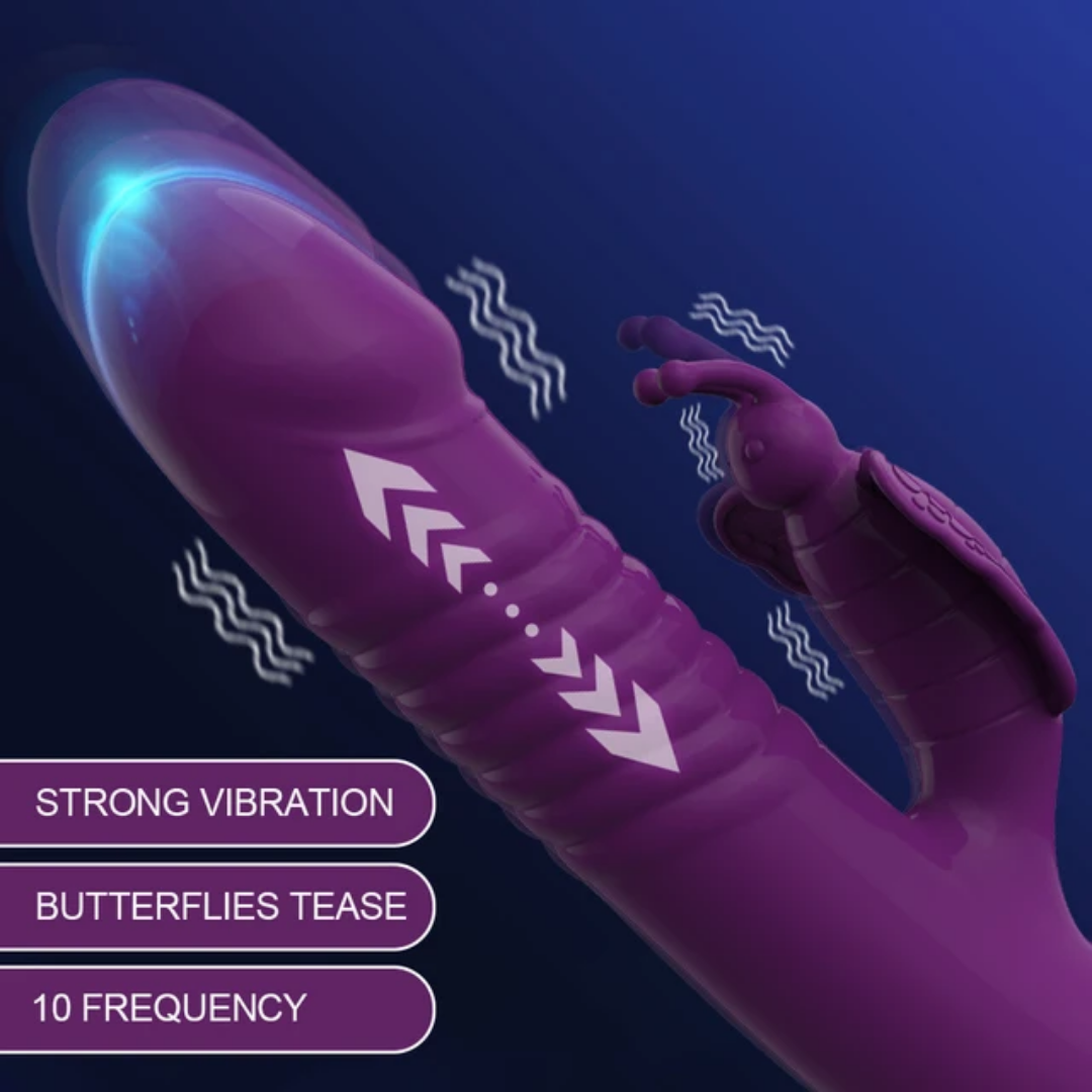 Voici le Vibromasseur Rabbit Va-et-Vient Butterflies Sensation, le stimulateur duo qui vous emporte vers des sensations internes et externes confortables en stimulant simultanément le clitoris et le point G. Ses puissants 10 modes de vibration vous emmènent vers des possibilités de plaisir infinies. La partie insérable de votre Vibromasseur Rabbit Va-et-Vient Butterflies Sensation stimule votre vagin, votre point G et ses oreilles pliables en forme de papillon vous promettent une stimulation ciblée, pour des orgasmes incroyables ! Profitez d'une double stimulation vaginale et clitoridienne qui vous mènera vers le septième ciel...
