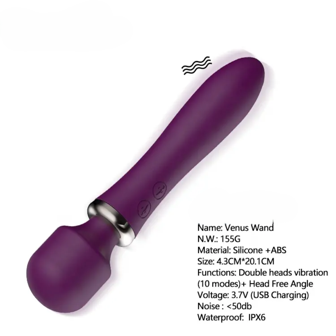 Vibrez avec le Vibromasseur Wand Duo Venus. Avec ses puissantes vibrations, il masse votre corps et stimule votre clitoris pour d'intenses moments de relaxation et de plaisir orgasmique.