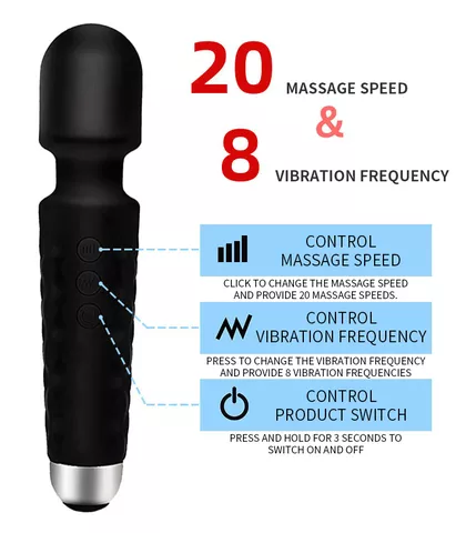 Le Vibromasseur Wand Knight vous procurera d'intenses sensations de plaisir grâce à son moteur ultra-puissant : 20 modes de vibrations et 8 vitesses ! Entièrement revêtu de silicone très doux, sa tête est très flexible pour une stimulation clitoridienne intense ou des massages très relaxants.